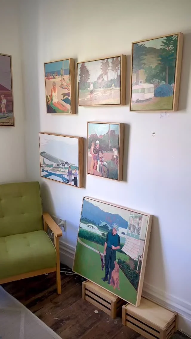 Back in the 60/70s many people emigrated from the UK to NZ on assisted relocation packages - £10 poms they became known as. Arriving with nothing, and not much of an idea of what to expect beyond a few grainy black and white promotional videos. My parent made that bold move, and I’m so grateful they did. This painting references the building of homes around Sunnynook Road, Auckland circa 1970.